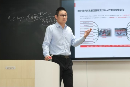 张聪伟先生首先从行业变革切入,指出数字技术的飞速发展正深刻改变物流行业的人才需求。物流业逐步走向集约化、智能化,未来将实现全程智能化管理。在此背景下,行业对具备物流管理与技术研发复合背景的人才需求日益迫切,尤其是熟悉智能平台、自动化设备的科研型、国际型物流人才。他对比了传统岗位与新兴技术岗位,强调“随着智能技术普及,企业对于人才的需求正逐步向技术技能型转变”,鼓励同学们主动拥抱技术,拓宽技能边界。