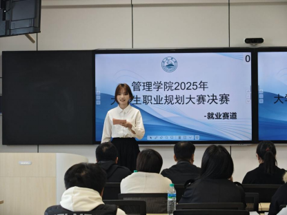 12月3日下午,管理学院2025年大学生职业规划大赛在立信楼404智慧教室举行。管理学院党委副书记周梓哲、党建与思政教育科科长郭振出席活动,人力资源教研室张科静主任、云绍辉教授、孙静副教授、方建华博士、秦峰博士担任大赛评委,师生代表现场观摩学习。