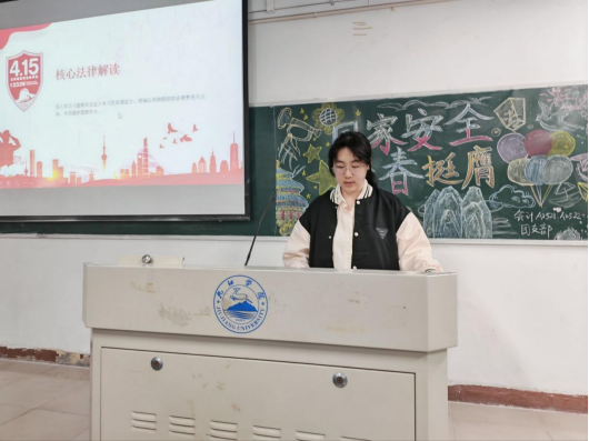 为深入学习贯彻总体国家安全观,提升青年学生的安全素养与防范意识,引导同学们挺膺担当、主动尽责,4月8日,管理学院于立信楼开展“国家安全,青春挺膺”主题团日活动,全体大一同学参加。