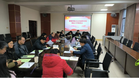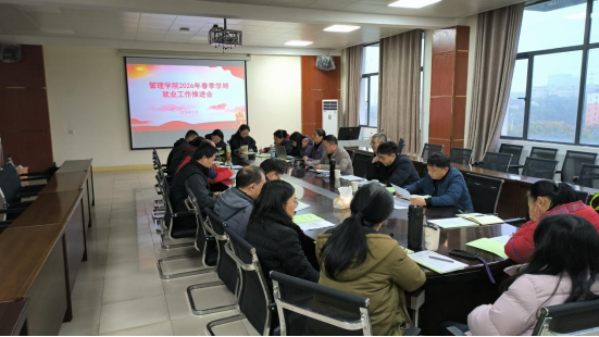 为进一步做好2026届毕业生就业工作,压实工作责任,共同研判就业形势、交流经验,3月18日,管理学院在立信楼504会议室召开2026届毕业生就业工作推进会。学院党委书记赵宇剑、院长许松涛、学生科、思政科负责人、毕业班班主任、辅导员、就业专干参会,会议由学院党委副书记周梓哲主持。
